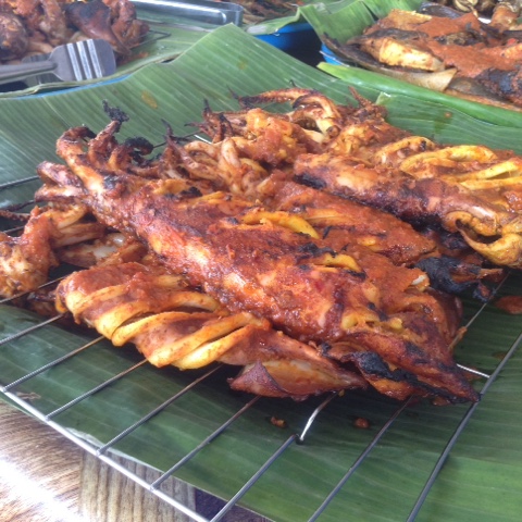 Sotong bakar panas - panas, cecah pula air asam, sambal belacan or sambal kicap dia perghh mantap.